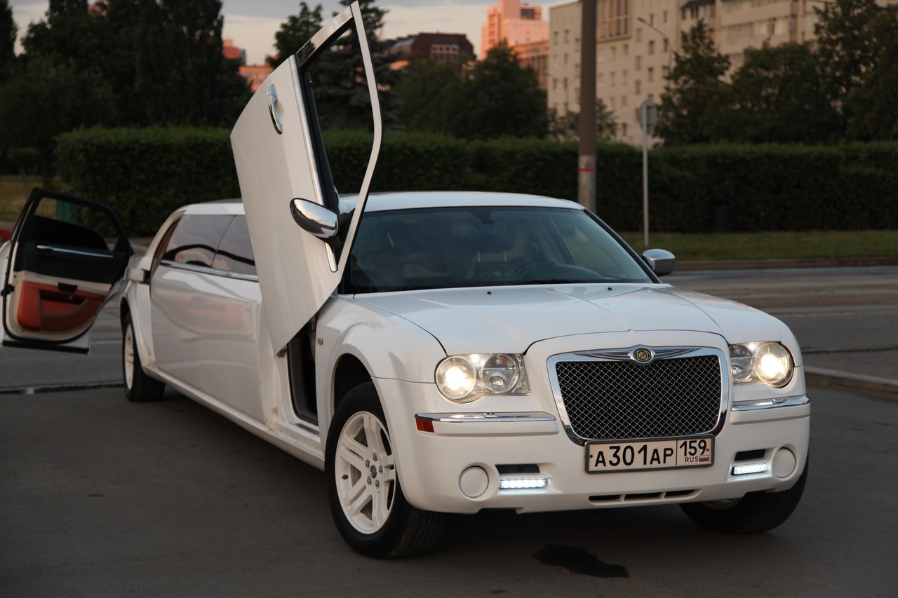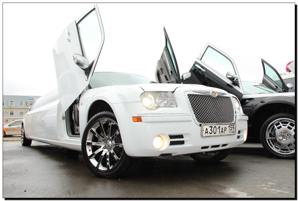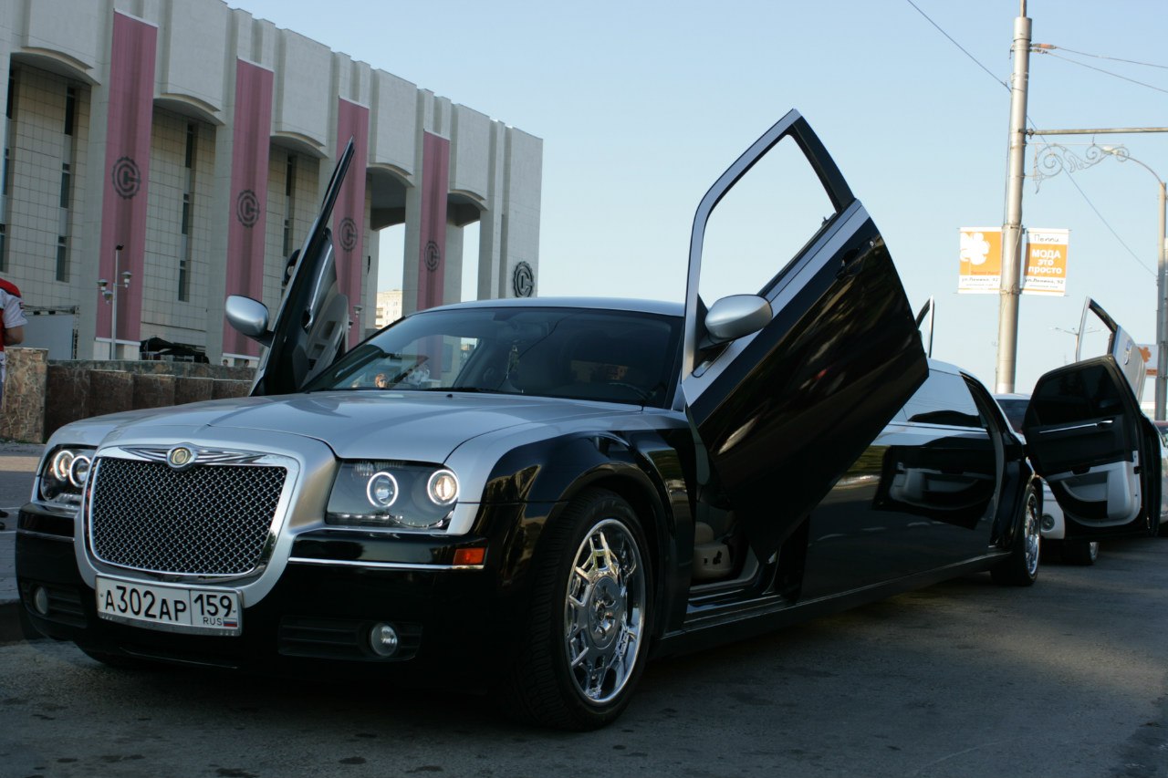 Лимузин крайслер 300С черный+серебро. Эксклюзив в Перми, новинка . Передние двери в стиле "ламбо", задние в стиле "противоходы", пол и потолок сделанны в оригинальном исполнении в стиле "диско", бар с неоновой подсветкой, музыка+сабвуфер, DVD/CD/USB/AUX, неоновая+флуоресцентная подсветка. В салоне лимузина с комфортом разместятся 10 человек.