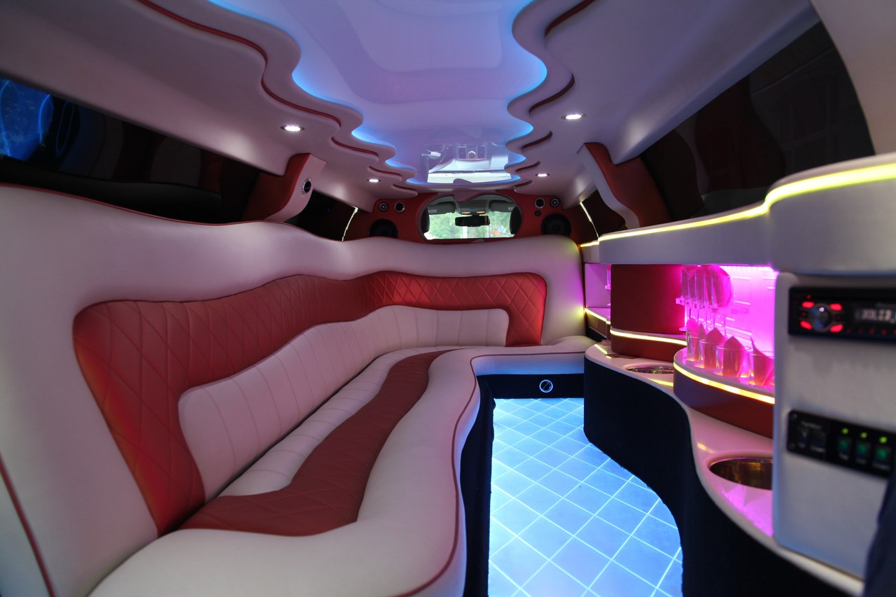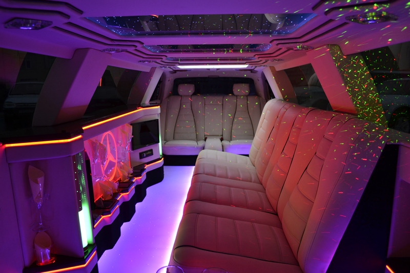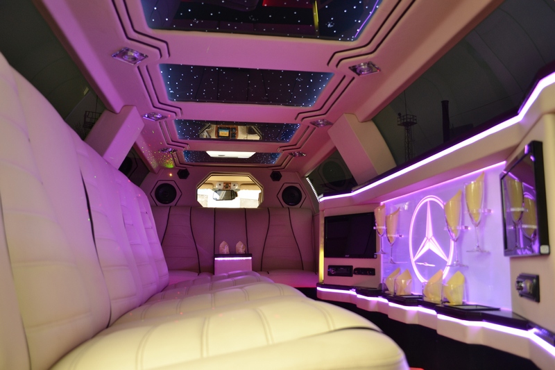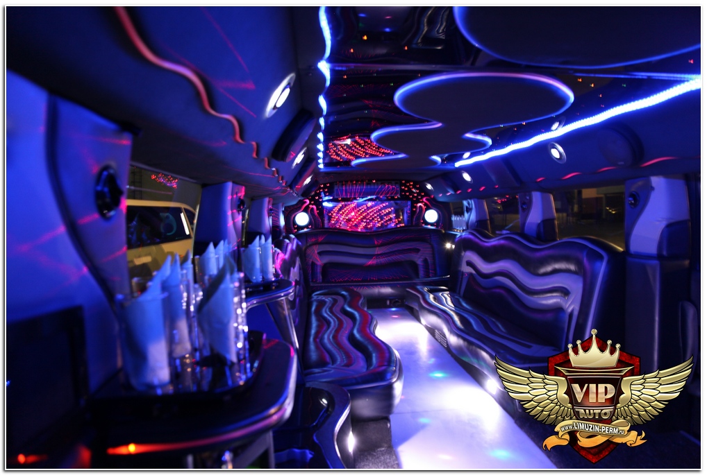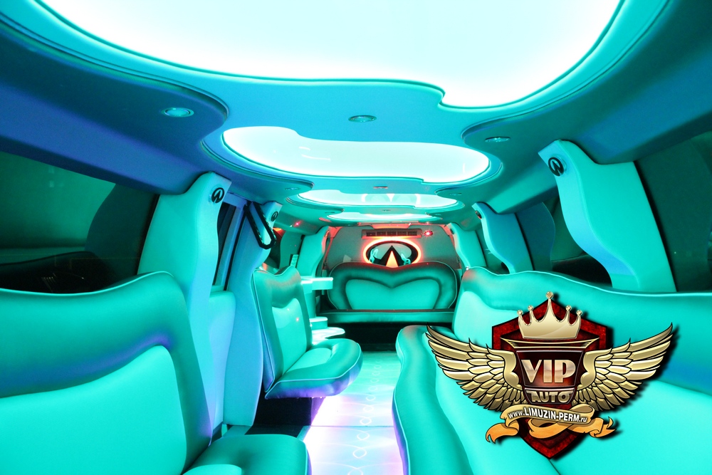 Белый, 10 человек. Двери в стиле ламбо и ролс ройс. Неоновая подсветка всего салона. Диско пол, потолок, бар. Фужеры под шампанское, емкости для льда. Музыка CD/DVD/AUX/USB. Большая плазма в салоне. Кондиционер.