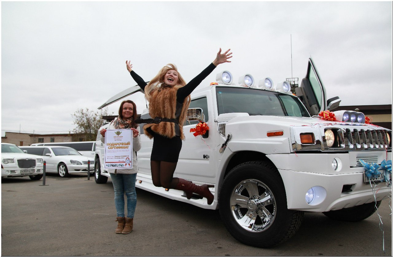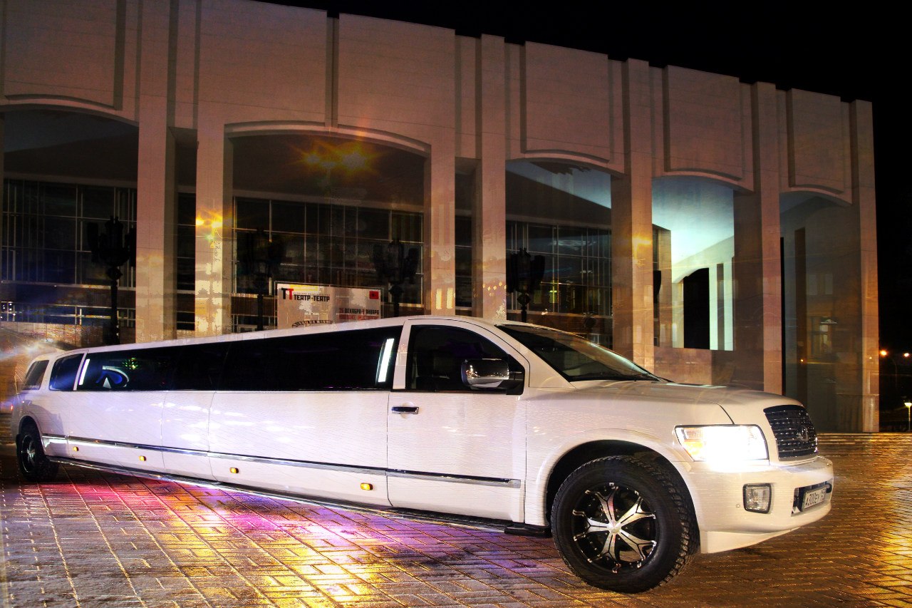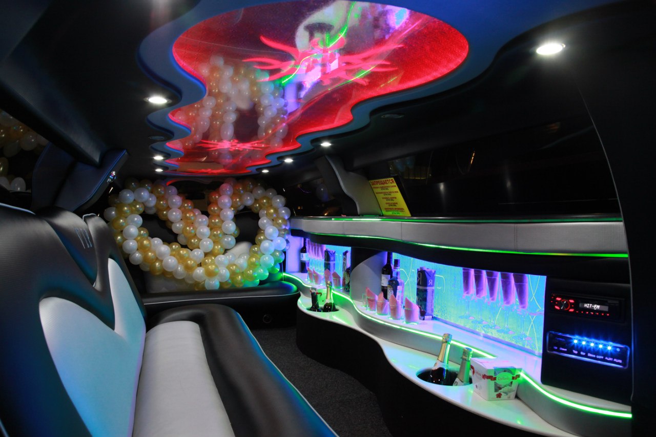 Белый, 10 человек. Двери в стиле ламбо и ролс ройс. Неоновая подсветка всего салона. Диско пол, потолок, бар. Фужеры под шампанское, емкости для льда. Музыка CD/DVD/AUX/USB. Большая плазма в салоне. Кондиционер.